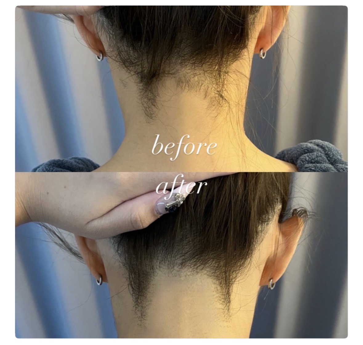 また、無理にすべての毛を脱毛するのではなく、“残すべき毛”と“整えるべき毛”を見極めた施術で、自然かつ清潔感のあるうなじに仕上げます。