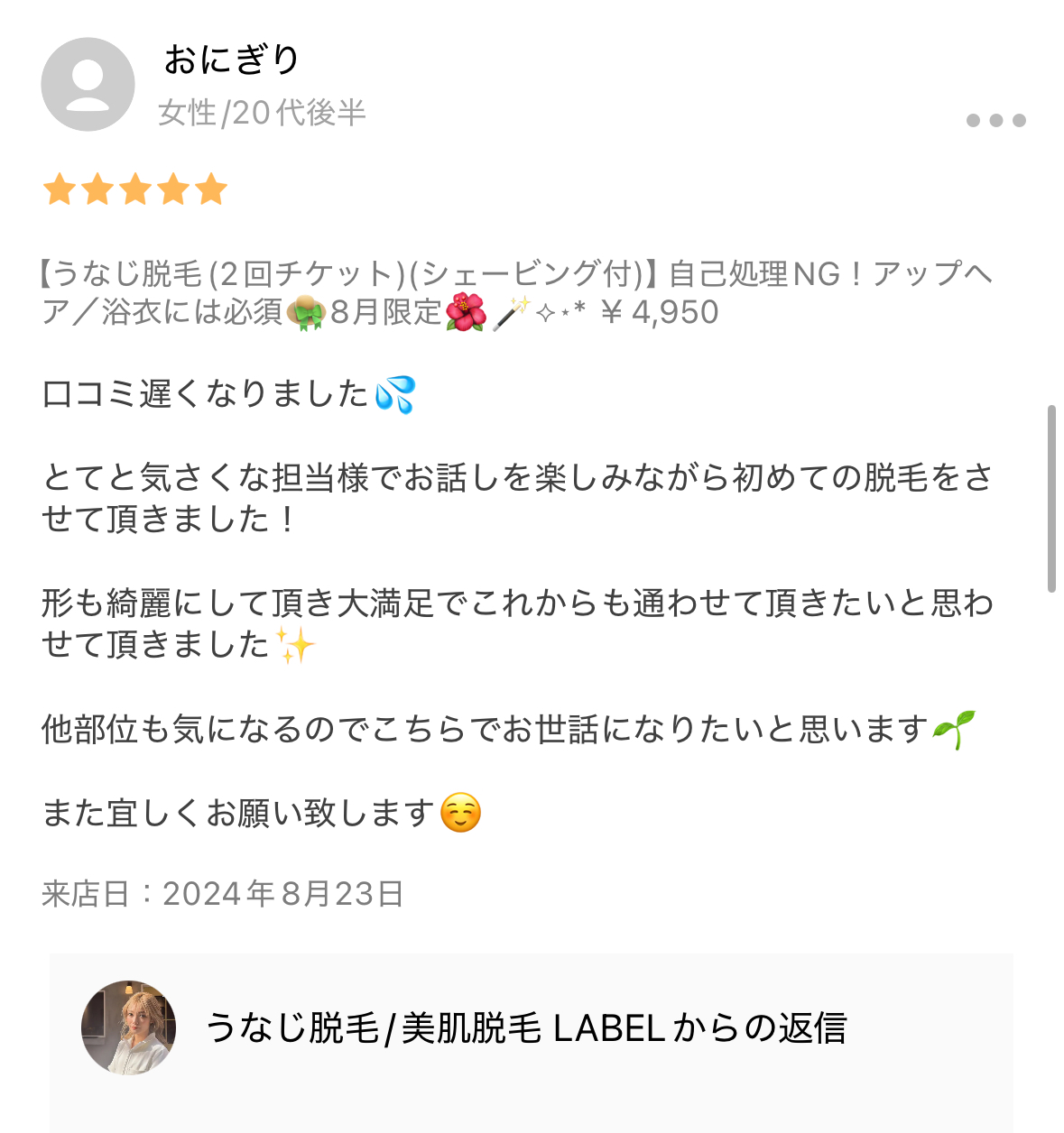 うなじ脱毛で大好評を頂いておりますLABEL