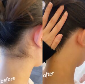 うなじをビフォーアフターです。